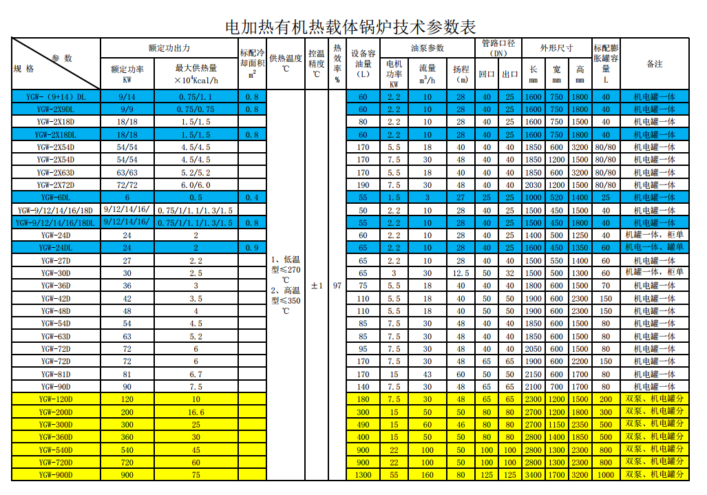 YGW系列--電加熱有機(jī)熱載體鍋爐技術(shù)參數(shù)表